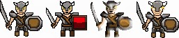 below: trying my hand at some pixel art and other styles for small sprites.